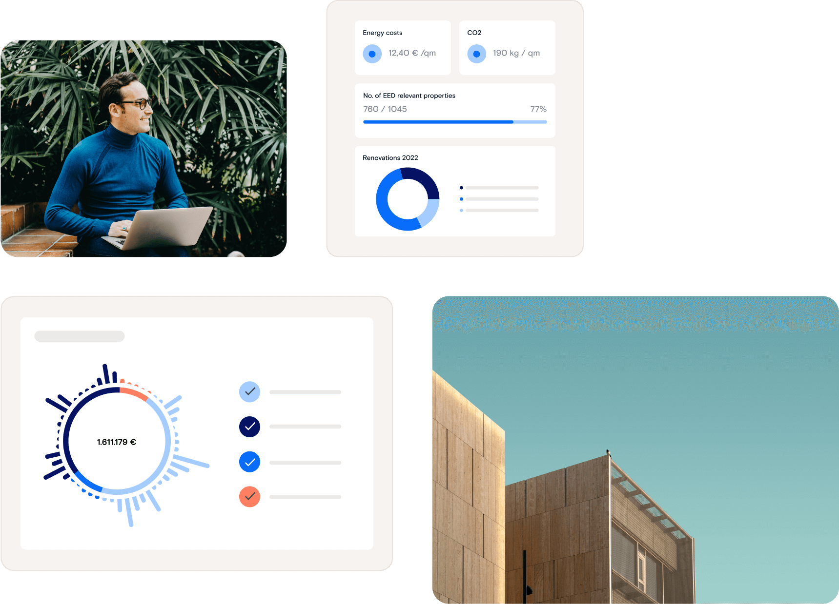Softwarelösungen, die Ihnen helfen, die Lebensdauer Ihrer Gebäude und Anlagen zu verbessern, Ihre Ziele und Verpflichtungen in Bezug auf die Energieeffizienz zu erfüllen und Ihren Mietenden langlebige Räume zu bieten.
